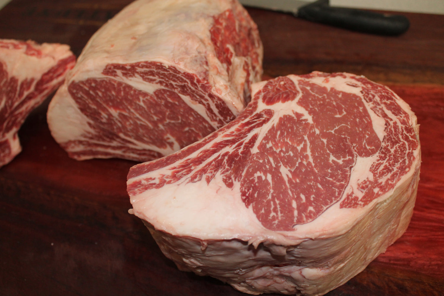 USDA Prime Angus, Masami American F1 Wagyu (50% Wagyu/50% Angus Breed), and...